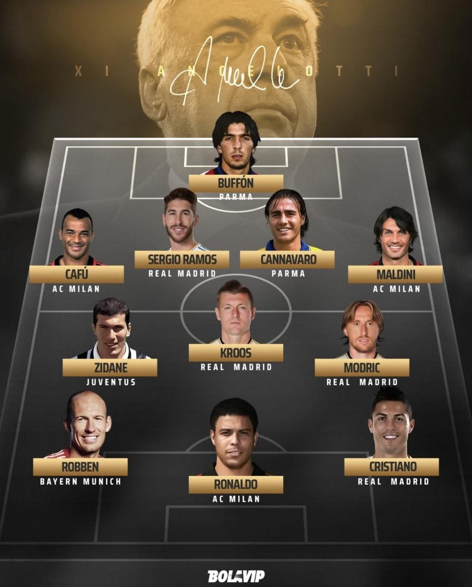 安切洛蒂麾下最佳阵容发布:大罗 克罗斯入选 卡卡都没资格入选?